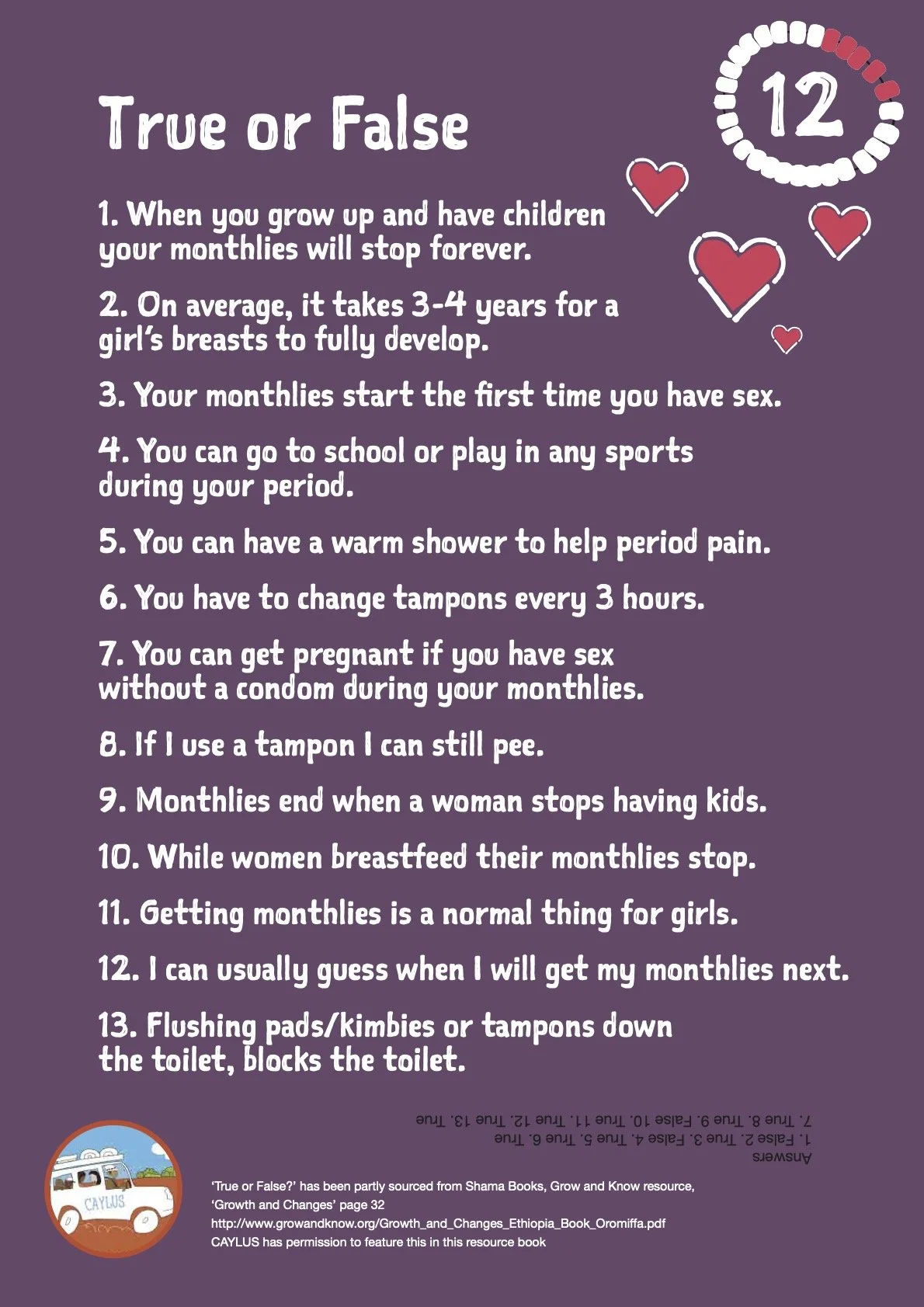 See MHM Central Australia booklet for further information on how to use these posters